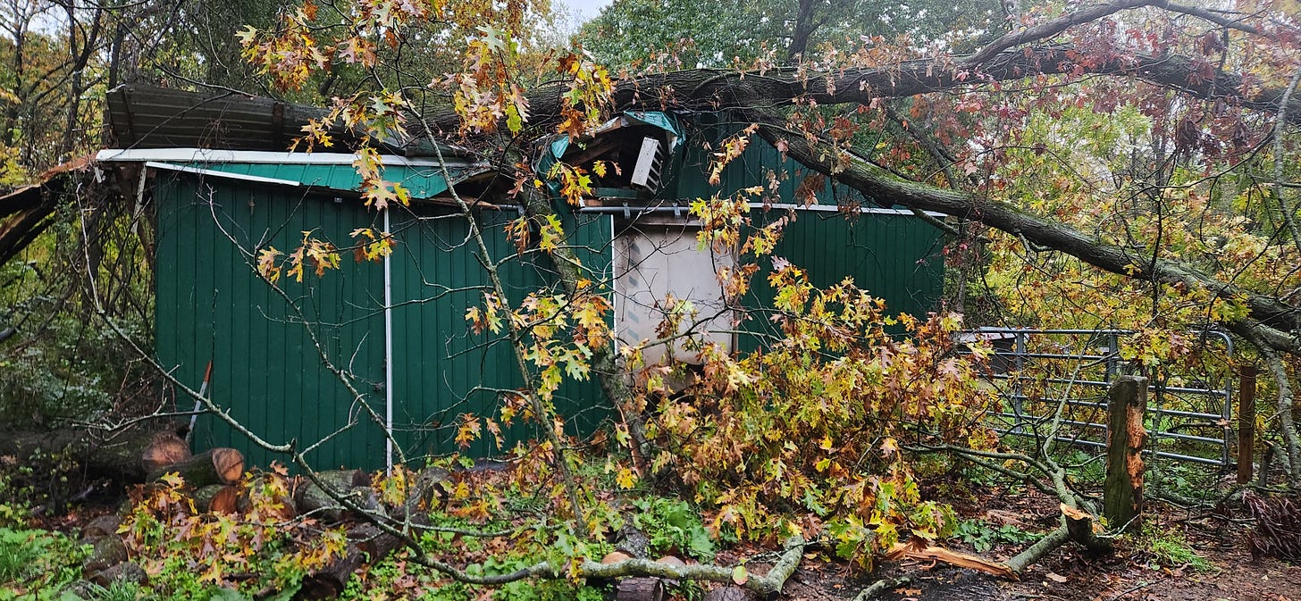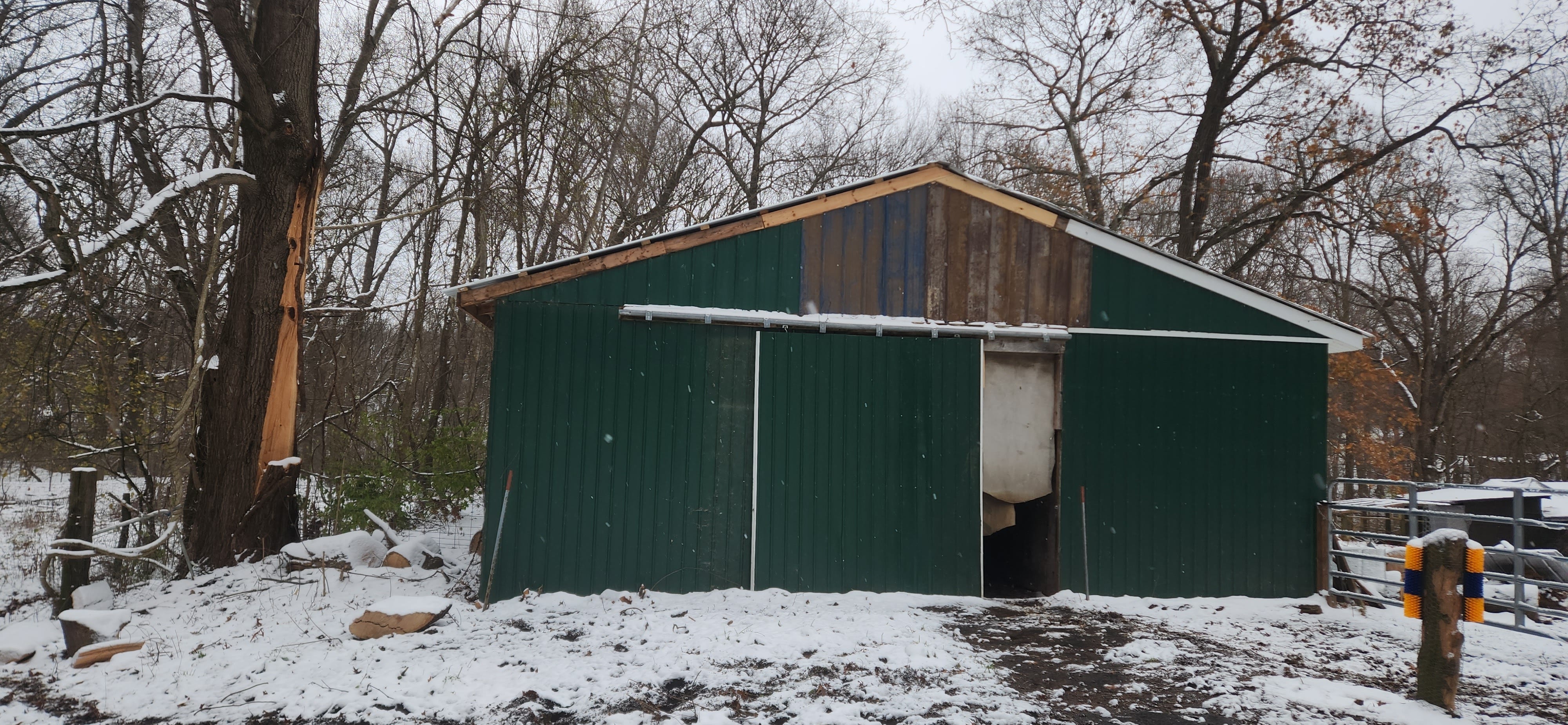 Here is a tree we did not yet cut down. Or rather, here is one branch of that great oak tree where it dropped through the donkey barn, crushing the end of it. The donkeys were inside, and they were traumatized. Even now, a month later, after Chris has repaired their barn, they are hesitant to go inside.