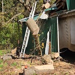 I won’t go so far as to cut down all the tree to eliminate all chances of them crushing the house. A man I talked to recently told me a story about a tree falling on his house during a storm, and his wife refused to come back home until every tree that was close enough to hit the house was removed. He paid $40,000 in tree removal expenses. We won’t do that—we will continue living in the woods.